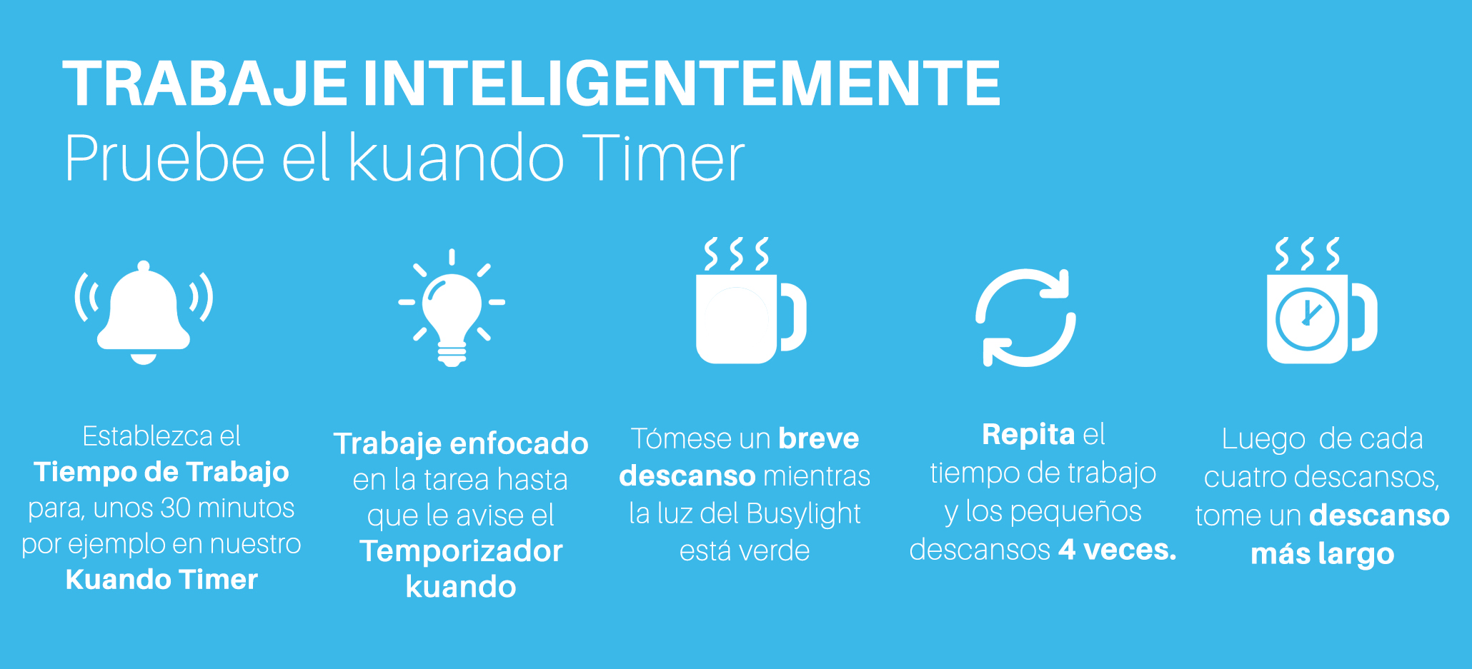 El busylight también cuenta con un timbre incorporado para que pueda ver y escuchar las llamadas entrantes dependiendo de su entorno de trabajo. ¿Sabe cuántas horas o minutos puede perder tratando de volver a la tarea después de ser interrumpido? En promedio, lleva más de 20 minutos volver a la tarea en cuestión. Imagine cuánto más productivo puede ser al tener esto como un indicador para otras personas dentro de su hogar que les haga saber que está ocupado en ese momento. Además, ahora para evitar el agotamiento del trabajo remoto, hay un temporizador kuando incorporado que le pedirá que tome descansos a ciertos intervalos para asegurarse de que se mantenga fresco y rejuvenecido durante su día de trabajo, ya sea para ponerse al día con los niños, hidratarse o incorporar algunos ejercicios en su rutina diaria de trabajo remoto.