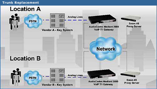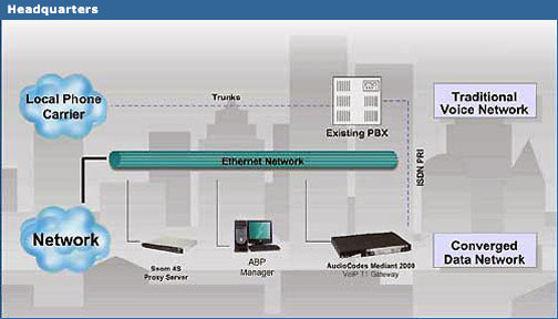 ABP Technology’s business partners can extend the functionality described in the previous section for the SOHO solution (such as IP phones, softphones, and the ability to work behind a firewall) to a small and medium enterprise (SME) environment by adding additional modular components.